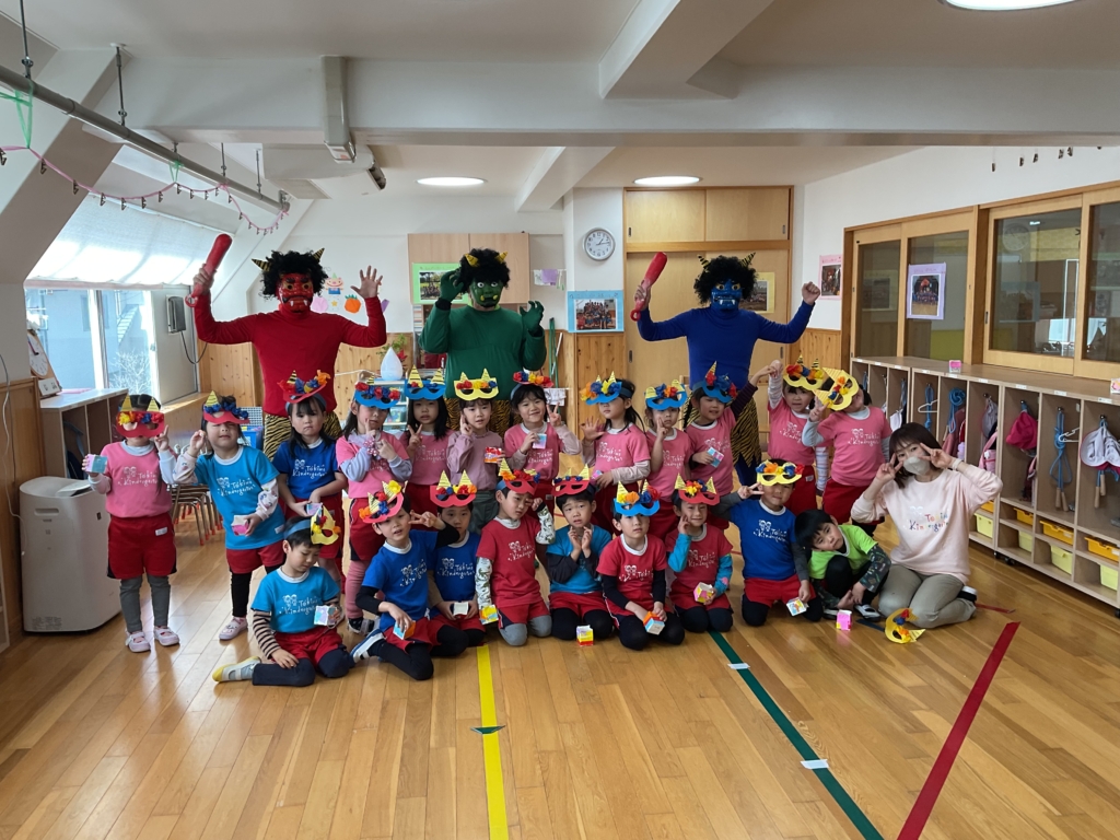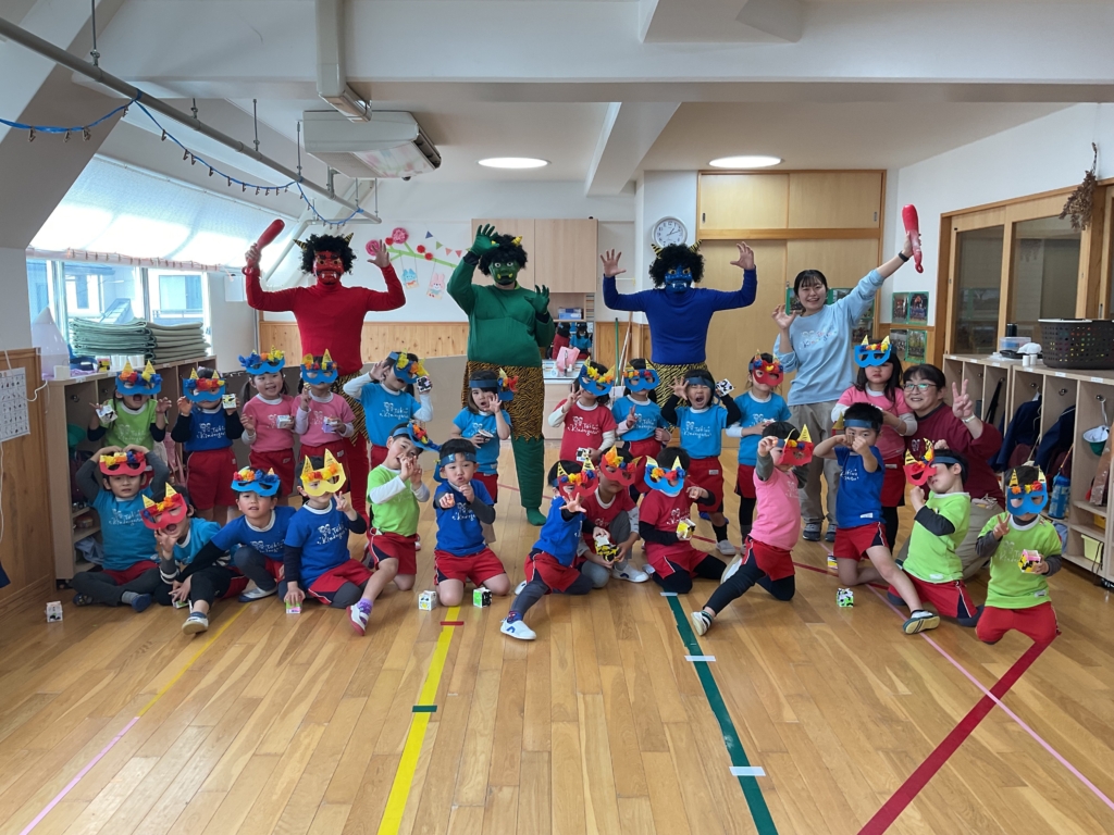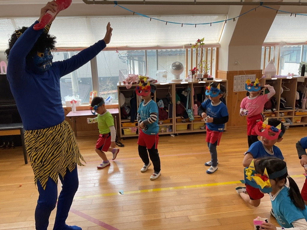 鬼が怖いお友達もいましたが、みんなしっかり「鬼は〜外 福は〜内」ができて、心の鬼を退治できました☺️