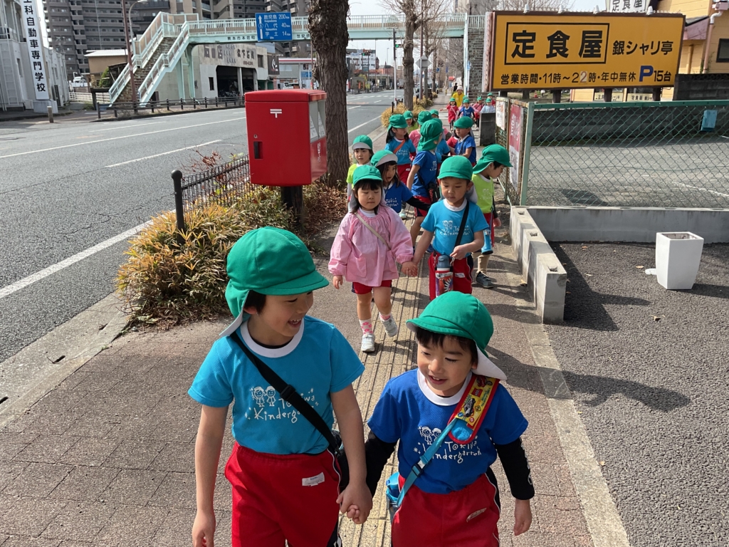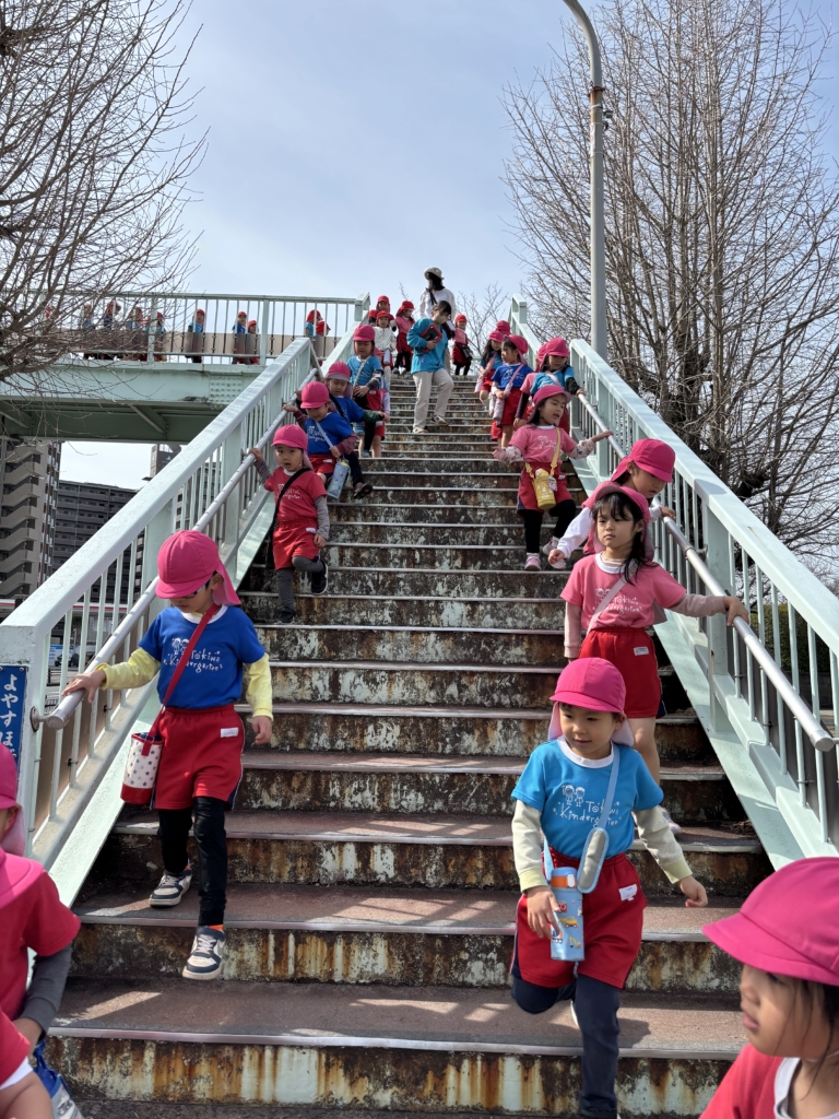 お兄さんお姉さんがいるお友達も多く「会えるかな?」と小学校に行くのを楽しみにしていました✨小学生のように歩道橋を渡って行きましたよ!