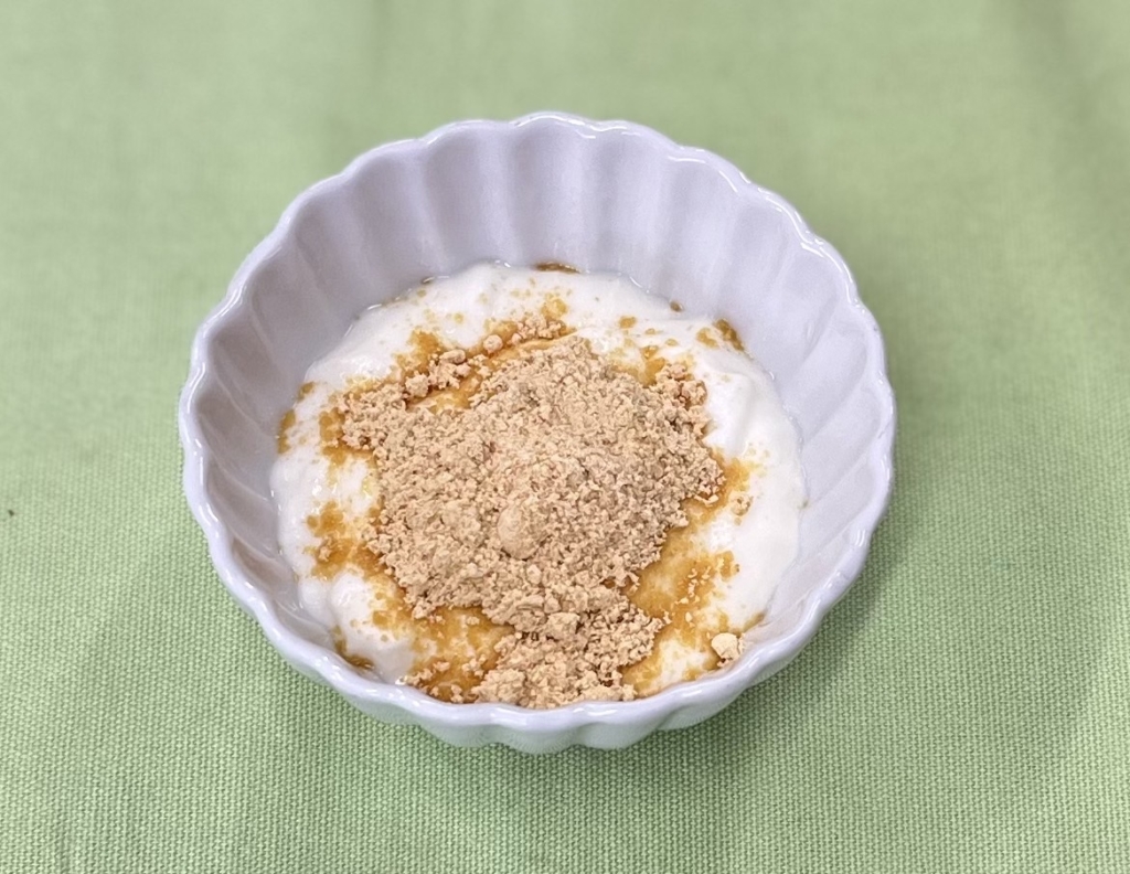 おやつは「きな粉ヨーグルト」です