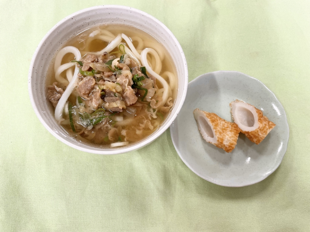 牛肉・玉ねぎ・蒟蒻を甘辛く炊いてうどんの上にトッピングしました^^