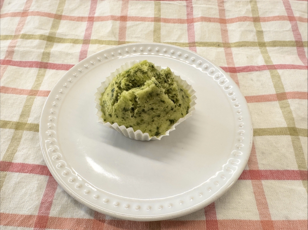 おやつは「ほうれん草蒸しパン」です