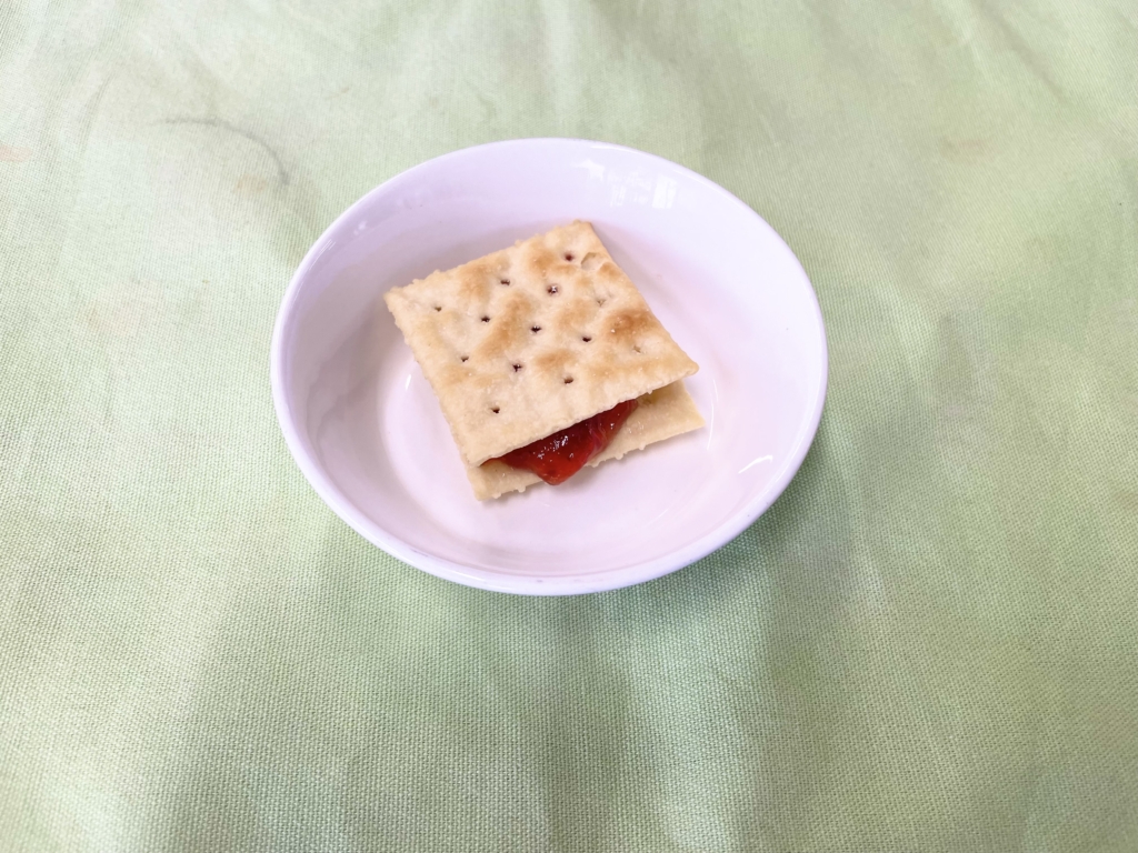 おやつは「クラッカージャムサンド」です