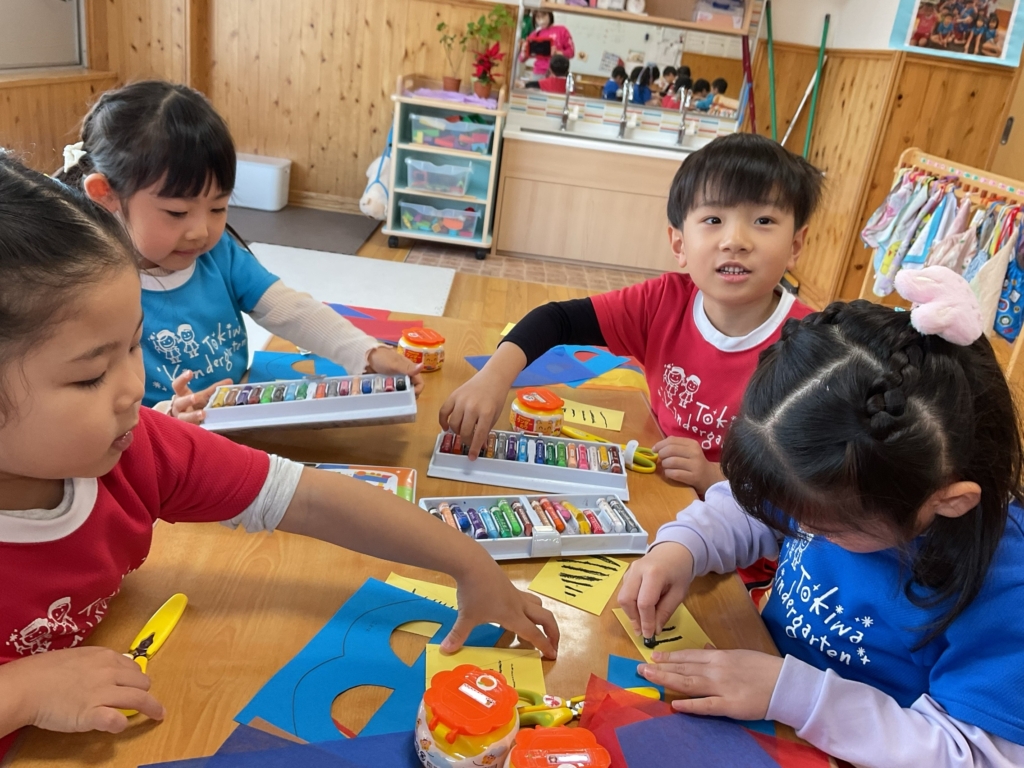 出来上がった後はお友達同士でお顔につけて見せ合われる姿が可愛らしかったです😄