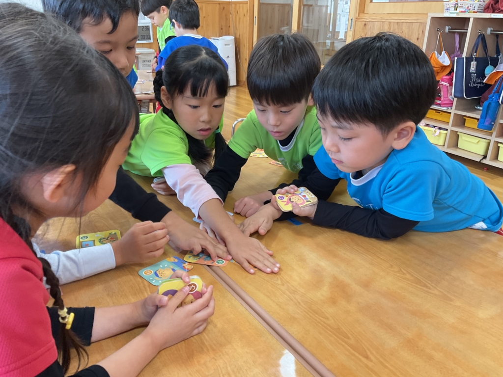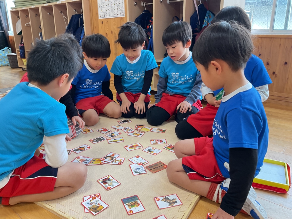 カルタでは、読み札をしっかりと聞き一生懸命に札を探していました!取れた時はとても喜んでいましたよ。平仮名が読めるようになりさらに楽しんでいます😆