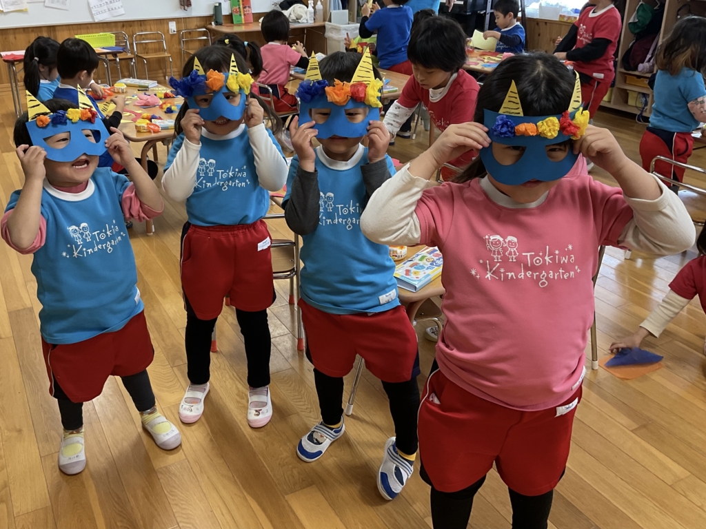 今週は製作で鬼のお面を作りました。