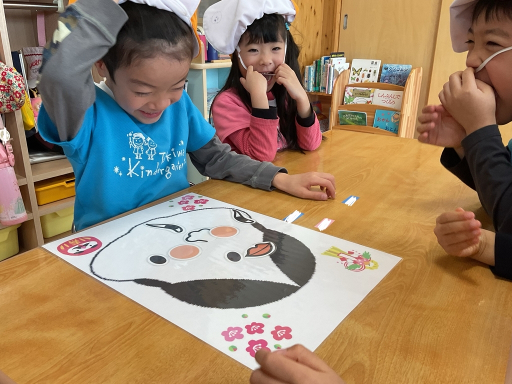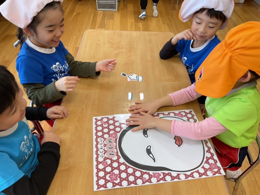 福笑いでは、「ここかな?」「あ!ずれてる!」と友達といい合いながら顔を作りました🥸